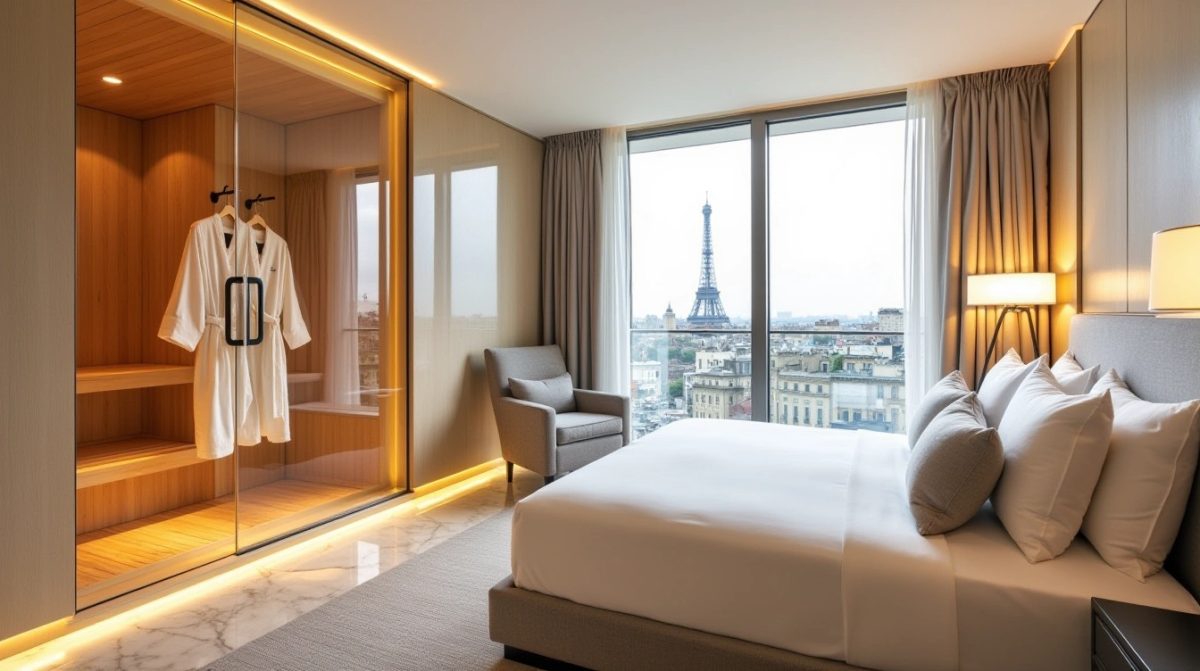 Profiter ensuite d’un sauna privatif prolonge cette sensation enveloppante, à la fois chic et paisible. Combinez exploration urbaine et pause détente pour un séjour équilibré.